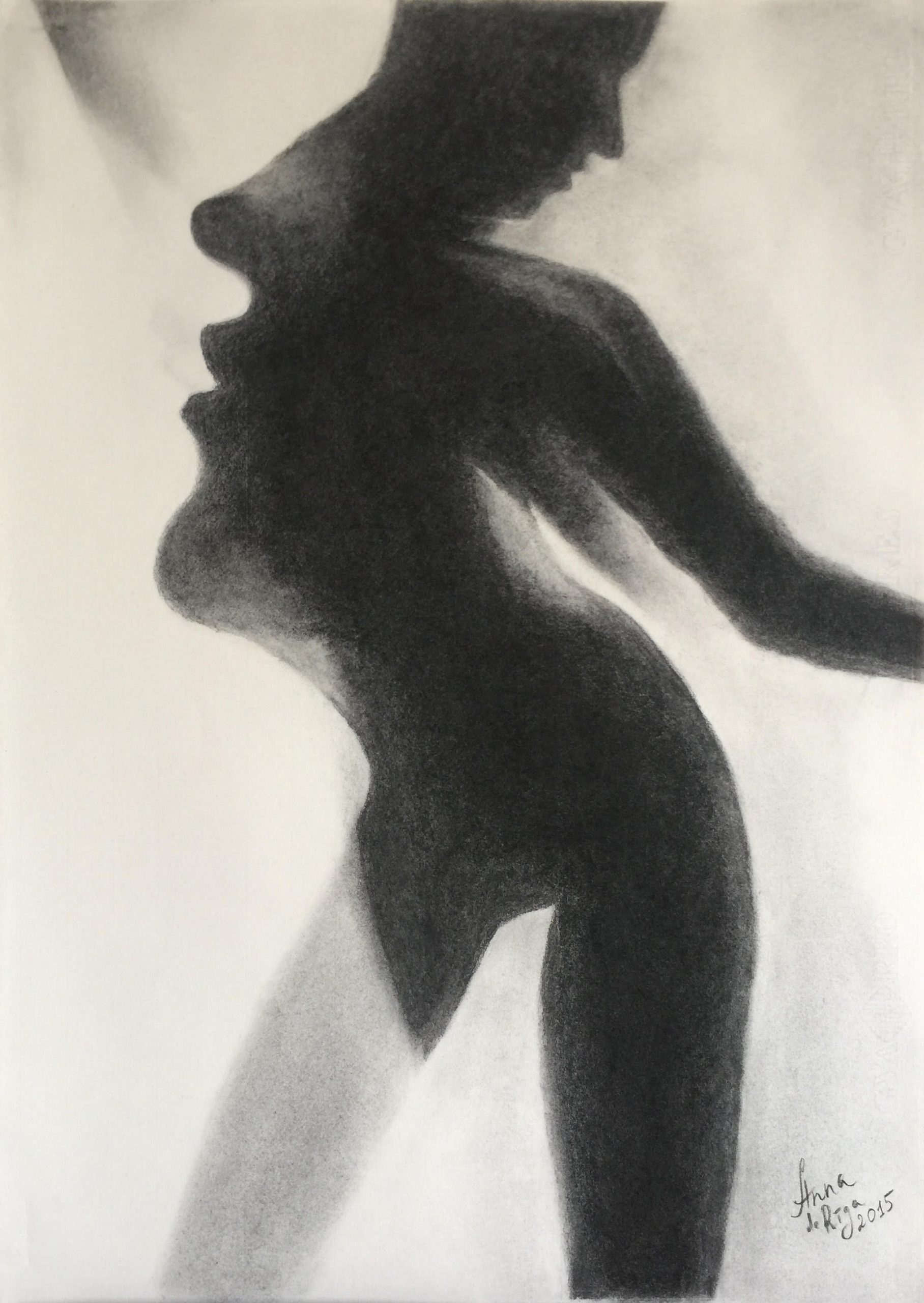 The Overlapping Shadows | 53.5 x 73 con marco | Carboncillo sobre papel Ingres | haz clic para ver con marco
